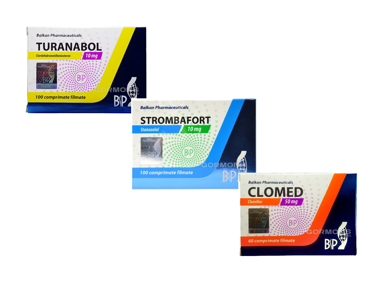 Препараты входящие в курс: turinabol (250 таб по 10 мг), stanozolol (250 таб по 10 мг), clomed (30 таб по 50 мг)